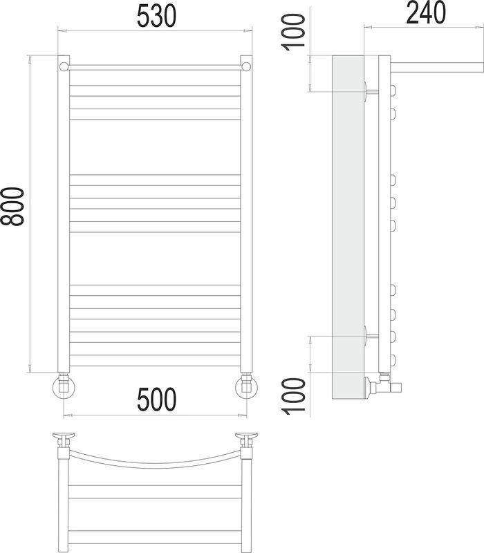 Полотенцесушитель Terminus сегмента standart, материал нержавеющая сталь, размер профиля (стойка/перекладина) 30х30 / овал 29.Рекомендуемая площадь помещения 4,