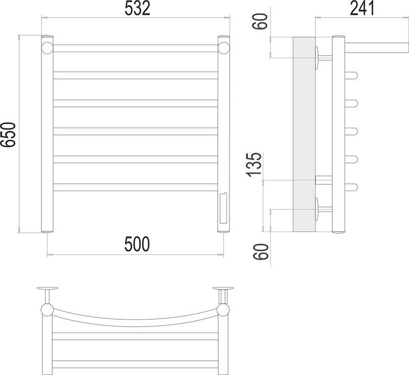 Полотенцесушитель Terminus сегмента standart, материал нержавеющая сталь, размер профиля (стойка/перекладина) ?32/?18.Рекомендуемая площадь помещения 1,5, Димер-