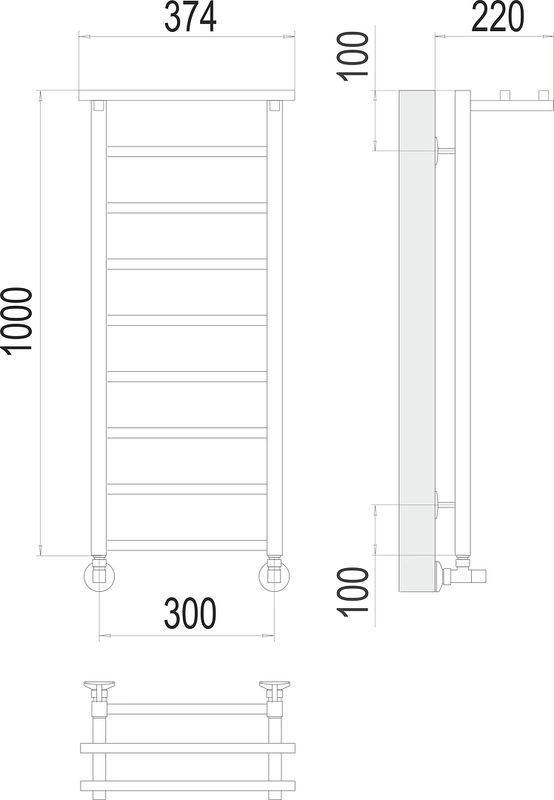 Полотенцесушитель Terminus сегмента standart, материал нержавеющая сталь, размер профиля (стойка/перекладина) 30х30 / 20Х20.Рекомендуемая площадь помещения 3,5,