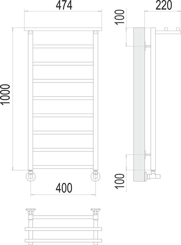 Полотенцесушитель Terminus сегмента standart, материал нержавеющая сталь, размер профиля (стойка/перекладина) 30х30 / 20Х20.Рекомендуемая площадь помещения 3,5,