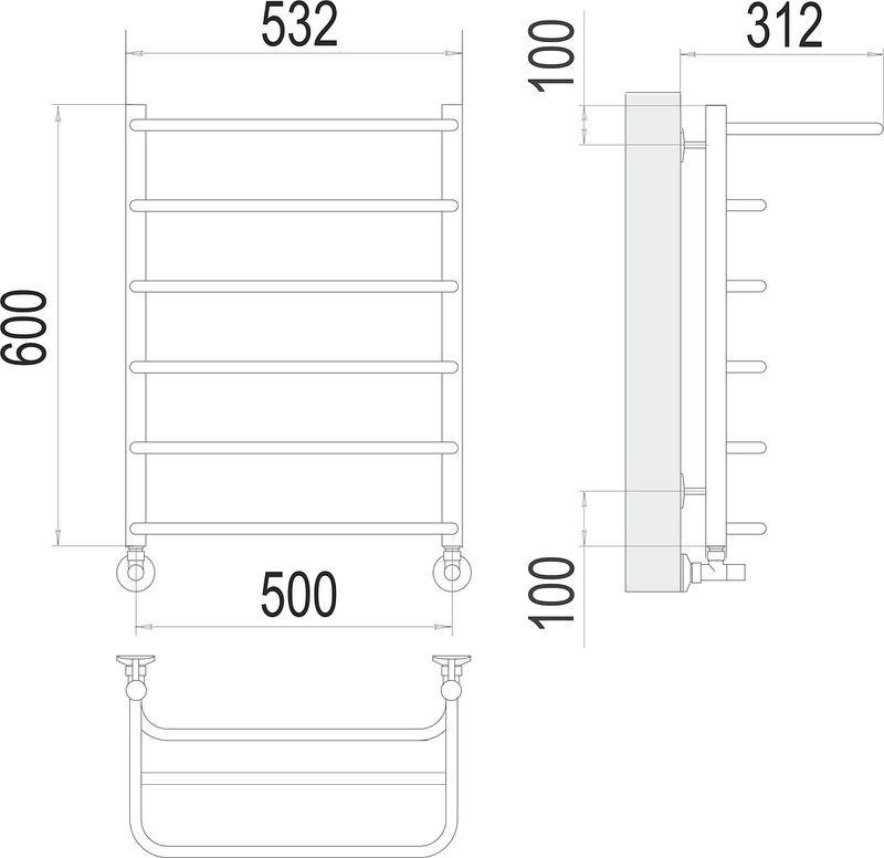 Полотенцесушитель Terminus сегмента econom, материал нержавеющая сталь, размер профиля (стойка/перекладина) ?32 / ?18.Рекомендуемая площадь помещения 2,5,