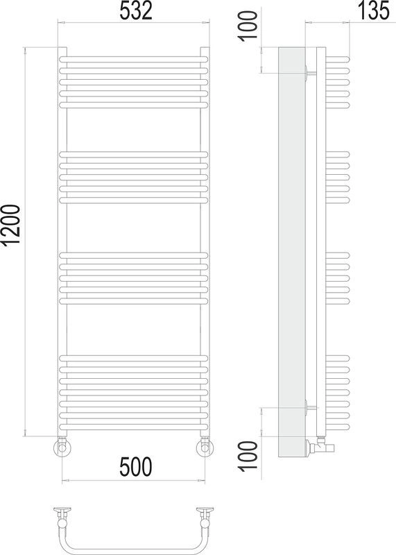 Полотенцесушитель Terminus сегмента standart, материал нержавеющая сталь, размер профиля (стойка/перекладина) ?32 / ?18.Рекомендуемая площадь помещения 6,5,