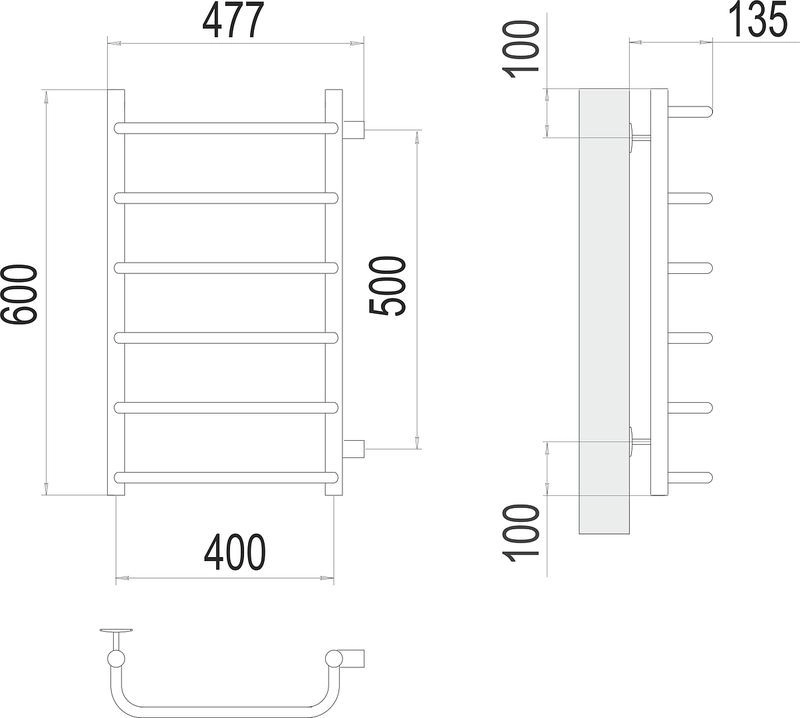 Полотенцесушитель Terminus сегмента econom, материал нержавеющая сталь, размер профиля (стойка/перекладина) ?32 / ?18.Рекомендуемая площадь помещения 2,