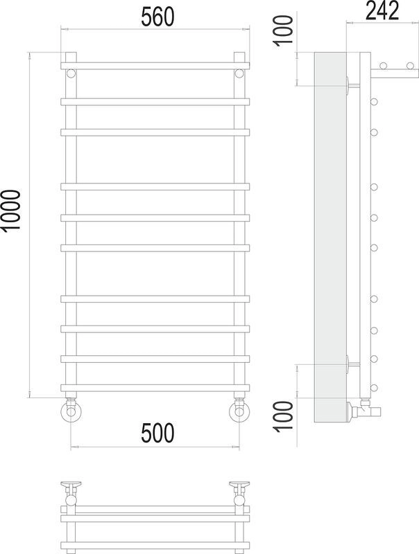 Полотенцесушитель Terminus сегмента standart, материал нержавеющая сталь, размер профиля (стойка/перекладина) ?32 / ?18.Рекомендуемая площадь помещения 4,