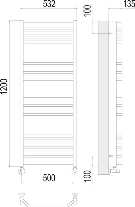 Полотенцесушитель Terminus сегмента standart, материал нержавеющая сталь, размер профиля (стойка/перекладина) ?32 / ?18.Рекомендуемая площадь помещения 6,