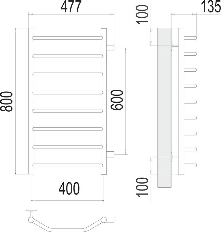 Полотенцесушитель Terminus сегмента econom, материал нержавеющая сталь, размер профиля (стойка/перекладина) ?32 / ?18.Рекомендуемая площадь помещения 2,5,