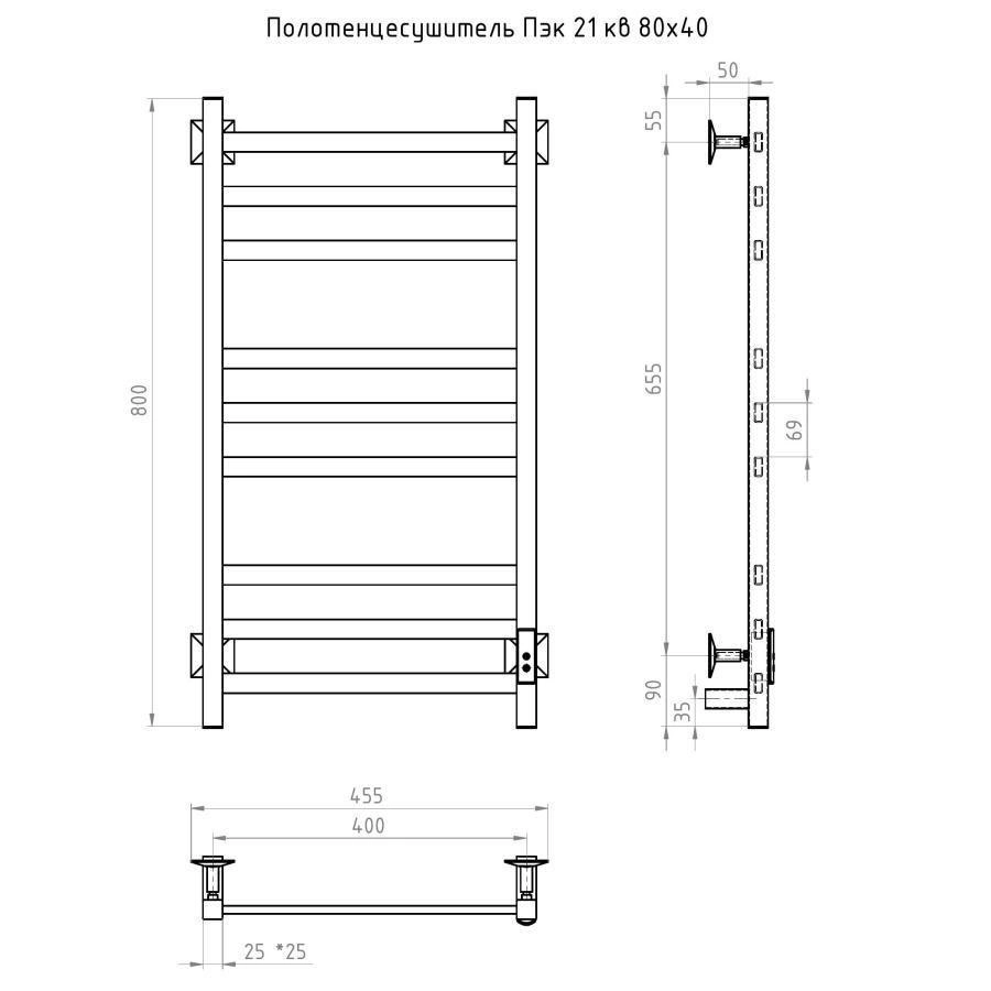 Комплектация : полотенцесушитель, телескопический держатель - 4 шт., паспорт изделия