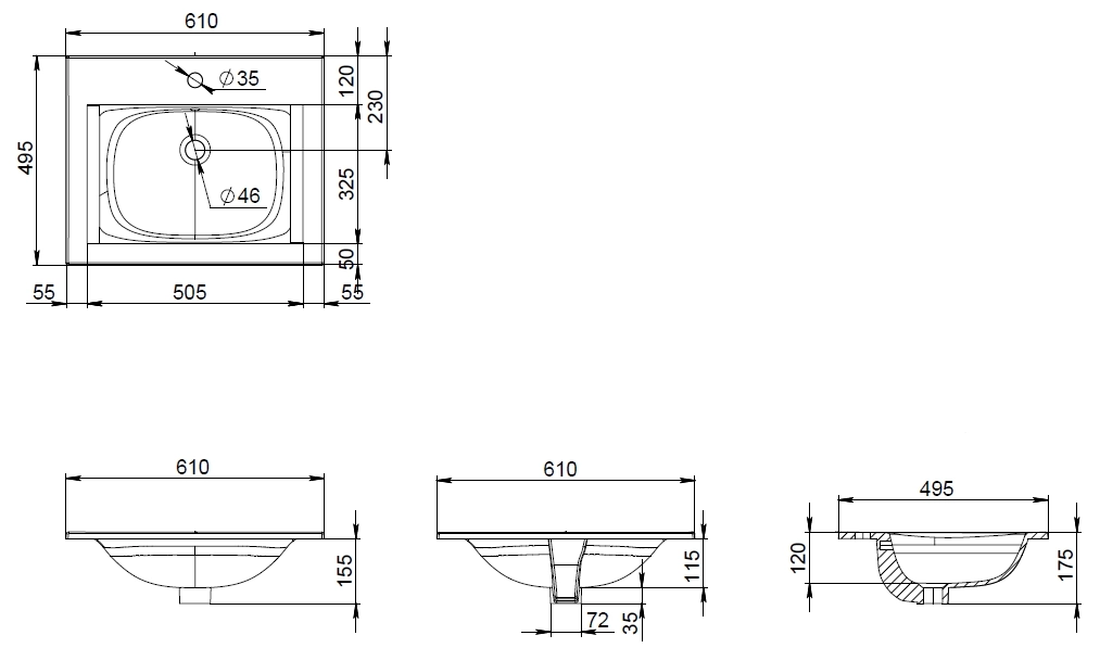 M70AWCC0602WG SPIRIT 2.0, Раковина мебельная, керамическая, 60 см, встроенная, цвет: белый, глянец