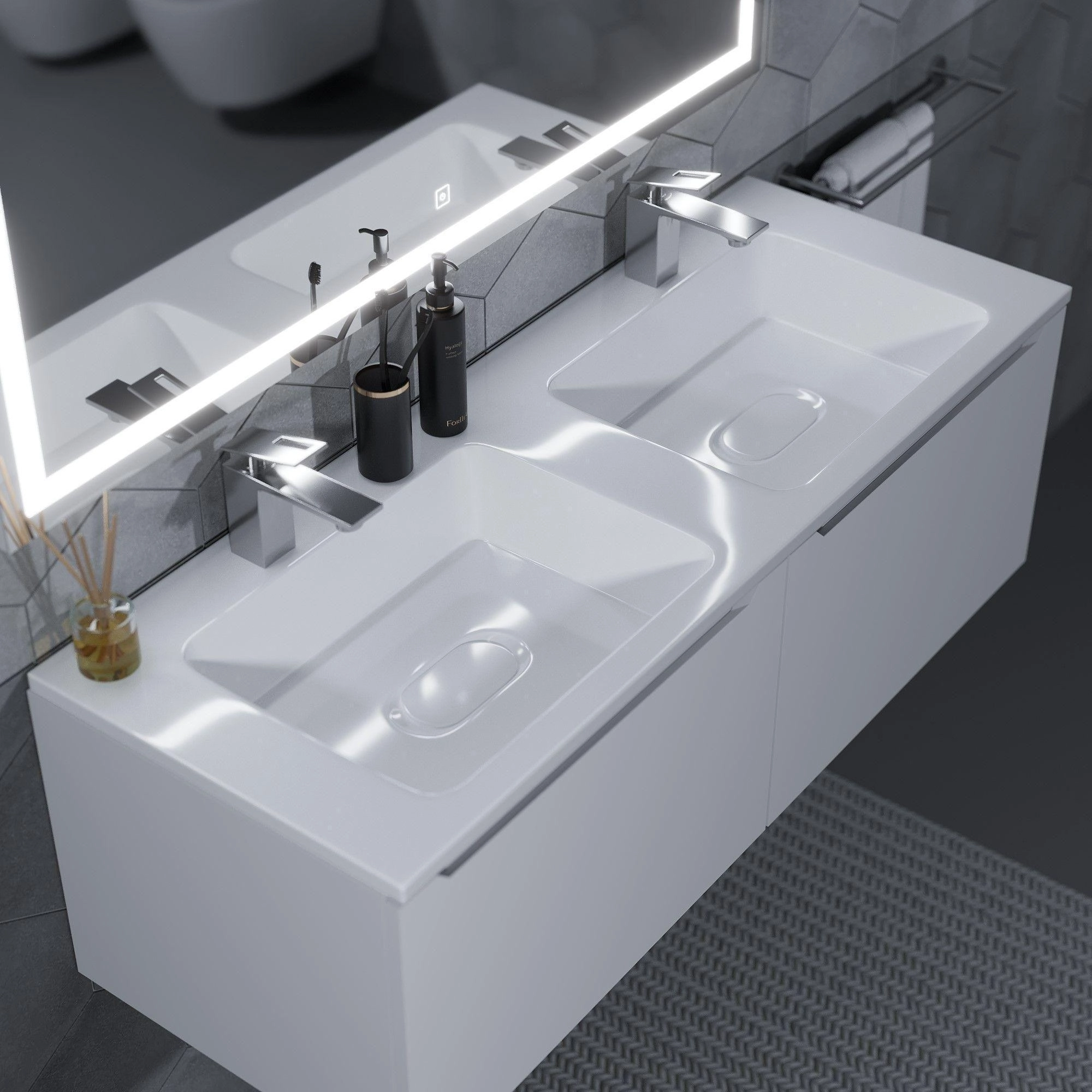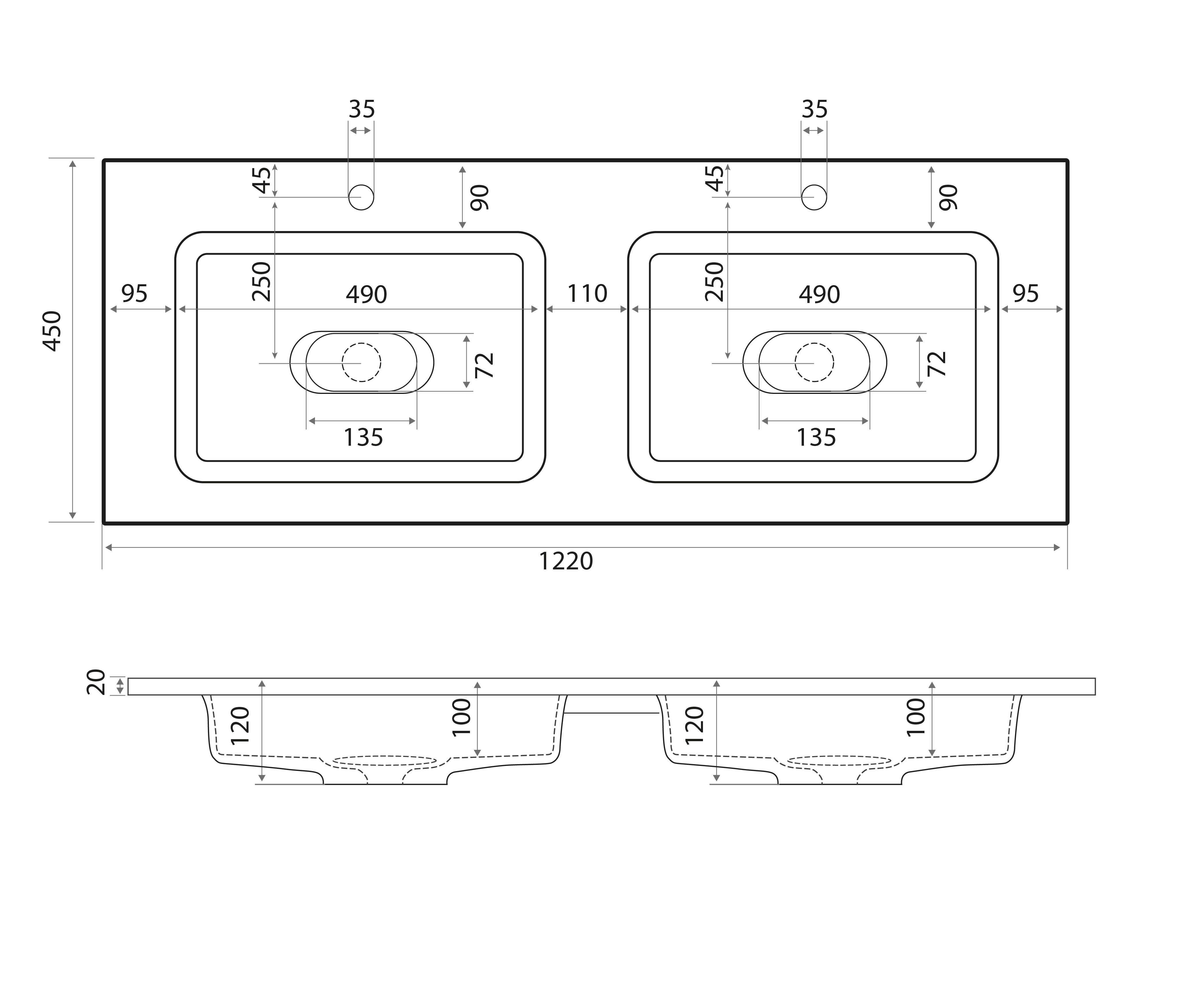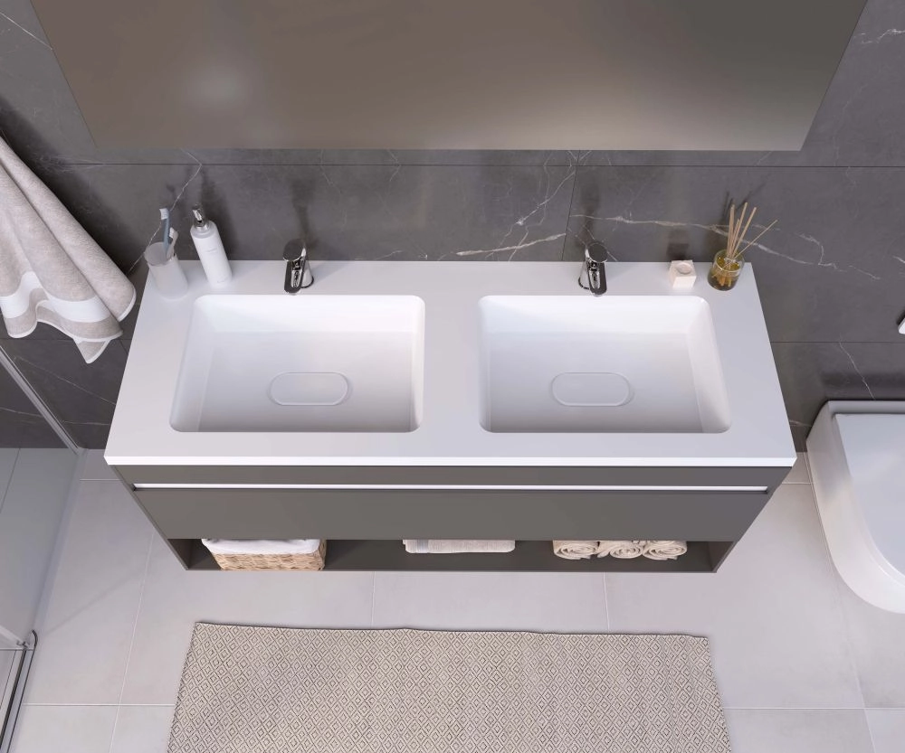 Глубина чаши, мм 110 Поверхность глянцевая Раковина - 1 шт., декоративная крышка для слива Раковины для ванной из коллекции Uperwood Modul с декоративной крышкой для слива изготовлены из литьевого мрамора с покрытием гелькоут, которое выполняет как декоративную, так и защитную функцию. Материал гарантирует гигиеническую безопасность изделий и характеризуется высокими бактерицидными свойствами. Кроме того, каждая раковина из коллекции Uperwood Modul обладает уникальными характеристиками прочности, устойчивости к истиранию, а также выдающейся стойкостью и качеством цвета. Лаконичная форма раковин отлично впишется любой современный интерьер ванной комнаты. Все раковины имеют отверстие для установки смесителя, а также бортик для размещения ванных принадлежностей. Коллекция Modul представлена раковинами шириной от 50 и 120 см. Раковина Modul 120 см имеет 2 чаши и 2 отверстия для смесителей