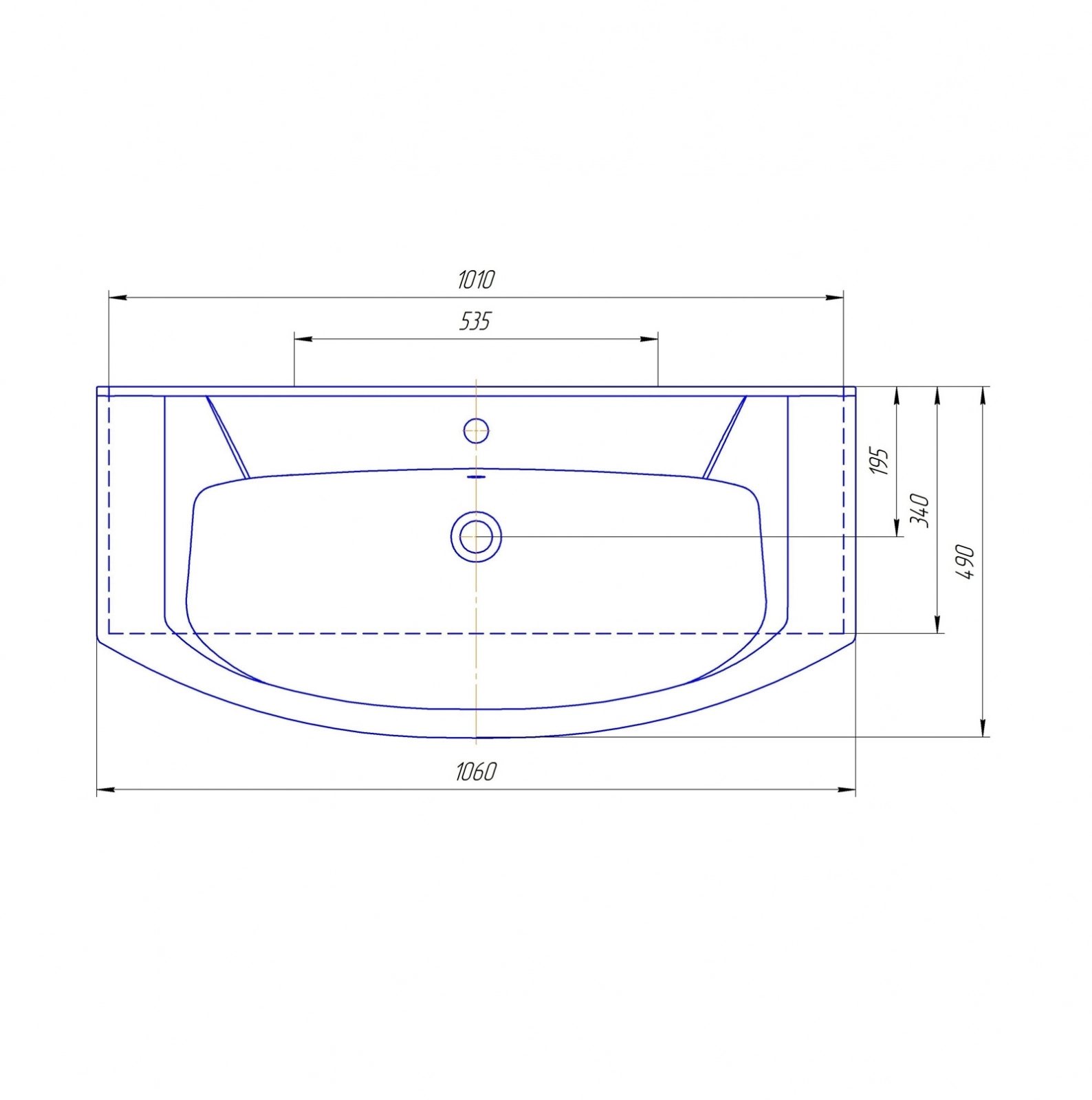 Цвет белый Вес, кг 22 Размеры (ДхШ), мм 1060x490 Глубина чаши, мм 145 Отверстие для смесителя По центру Комплектация Хромированное кольцо для переливного отверстия Тип установки На мебель