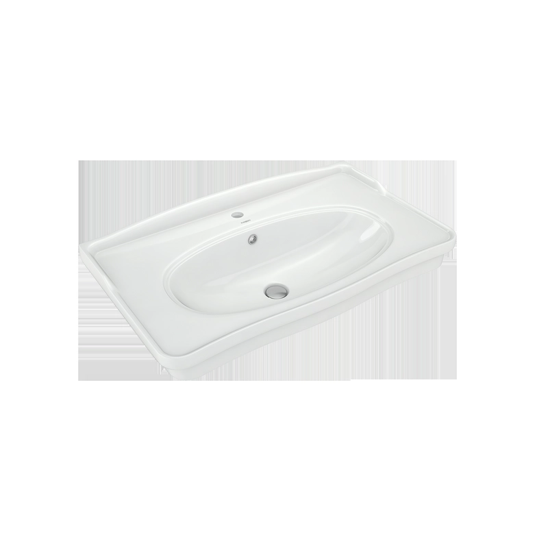 Раковина универсальная с отверстием под перелив, имеет одно отверстие под смеситель, расположение в центре