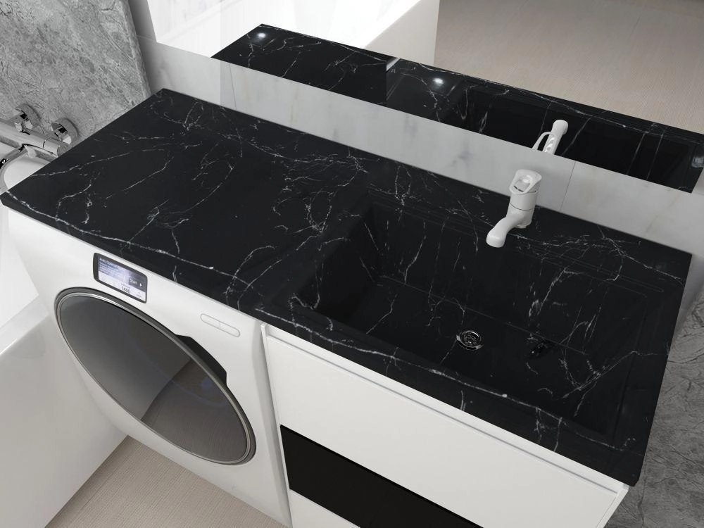 —Раковина над стиральной машиной Uperwood Марсал 120 см, правая, черный мрамор