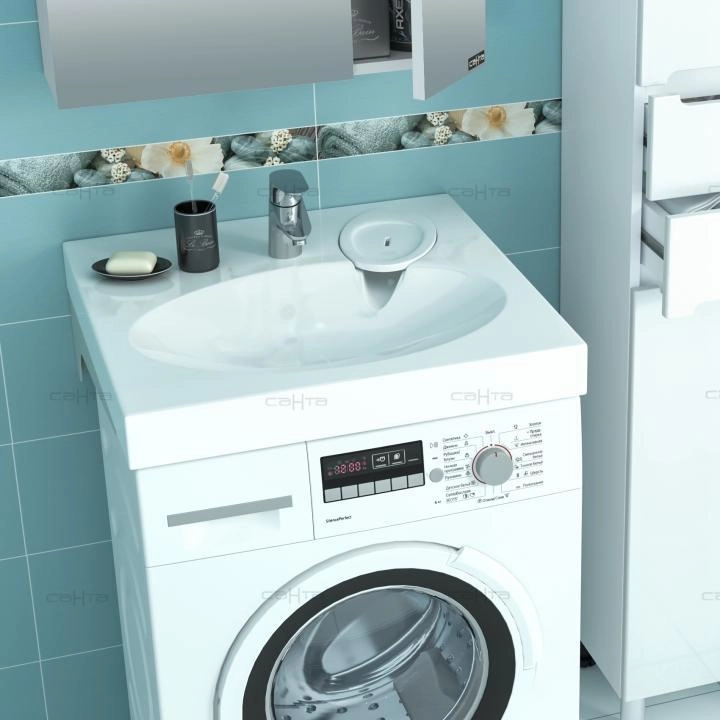 Раковина Санта Луна 60x60x9 900103 над стиральной машиной с кронштейнами Раковина над стиральной машиной "Луна" отлично подойдёт к любому дизайну ванной комнаты. Благодаря нейтральной, овальной формы чаши, эта раковина создаёт уютную, мягкую атмосферу в ванной комнате. Материал раковины литьевой мрамор. - Максимально возможная глубина стиральной машины 48 см - Рекомендуемая высота установки раковины над стиральной машиной минимум 2 см - Кронштейны 2шт, в комплекте - Сифон приобретается отдельно