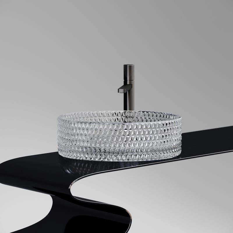 Умывальник чаша накладная круглая (прозрачная) Cristal 360*360*112мм