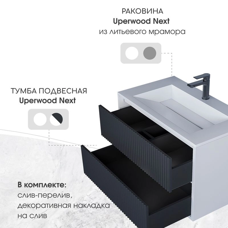 Премиальная раковина для ванной комнаты от бренда Uperwood из коллекции Next Premium с декоративной накладкой для слива изготовлена из литьевого мрамора по Итальянскому дизайну. Материал гарантирует гигиеническую безопасность изделий и характеризуется высокими бактерицидными свойствами. Покрытие раковин - гелькоут, выполняет как декоративную, так и защитную функцию. Каждая раковина из коллекции Uperwood Next Premium обладает уникальными характеристиками прочности, устойчивости к истиранию, а также выдающейся стойкостью и качеством цвета. Гарантия от производителя - 4 года. Лаконичная форма раковин отлично впишется в любой современный интерьер ванной комнаты. Все раковины имеют отверстие для установки смесителя, а также бортик для размещения ванных принадлежностей. Белая глянцевая раковина Uperwood Next Premium 70 см (700 х 450 х 130 мм) предназначена для установки на подвесные тумбы из коллекции Uperwood Next Premium шириной 70 см: белая/графит 1 выдвижной ящик (арт. 3930205150), белая/графит 2 выдвижных ящика (арт. 3930205151), белая 1 выдвижной ящик (арт. 3930205152), белая 2 выдвижных ящика (арт. 3930205153). Рекомендуем дополнить тумбу с раковиной подвесным шкафом-пеналом из коллекции Uperwood Next Premium: белый (арт. 2950205301), белый/графит (арт. 2950205311). Для установки с раковинами Uperwood Next Premium подходят также подвесные тумбы из коллекции Uperwood Tanos и Uperwood Barsa шириной 70 см. Конструкция раковины позволяет также встроить ее в столешницу. Декоративная накладка для слива поставляется в комплекте к раковине.