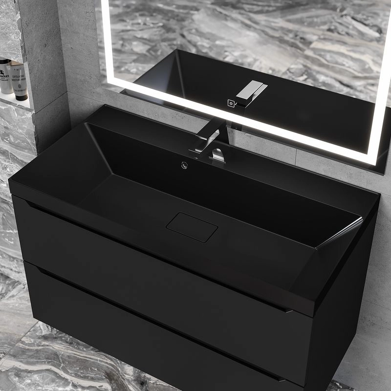 Раковины для ванной комнаты от бренда Uperwood из коллекции Classic New с декоративной крышкой для слива изготовлены из литьевого мрамора. Материал гарантирует гигиеническую безопасность изделий и характеризуется высокими бактерицидными свойствами. Покрытие раковин - гелькоут, выполняет как декоративную, так и защитную функцию. Каждая раковина из коллекции Uperwood Classic New обладает уникальными характеристиками прочности, устойчивости к истиранию, а также выдающейся стойкостью и качеством цвета, который никогда не изменит своей белизны. Гарантия от производителя - 4 года. Лаконичная форма раковин отлично впишется в любой современный интерьер ванной комнаты. Все раковины имеют встроенный перелив и отверстие для установки смесителя, а также бортик для размещения ванных принадлежностей. Коллекция Classic New представлена раковинами шириной от 50 до 100 см, а также раковиной шириной 40 см без декоративной крышки. Черная глянцевая раковина Uperwood Classic New 90 см (900 х 450 х 163 мм) предназначена для установки на подвесные тумбы из коллекции Uperwood Tanos шириной 90 см: белая (арт 291020245), белая с графитовыми вставками (арт. 2930205143), черная (арт. 291020233). Рекомендуем дополнить тумбу с раковиной подвесным шкафом-пеналом из коллекции Uperwood Tanos в цвет тумбы, а также зеркалом для ванной комнаты с подсветкой из коллекции Uperwood Tanos 90х80 см (арт. 291020223) Конструкция раковины позволяет также встроить ее в столешницу. Для раковин Uperwood Classic New подходят также подвесные тумбы Uperwood Barsa в черном и белом цвете с фасадами в цветом исполнении "дуб сонома" соответствующей ширины. Декоративную крышку для слива раковин также можно приобрести отдельно в случае утраты или для замены (арт. UPDClassic new-w)