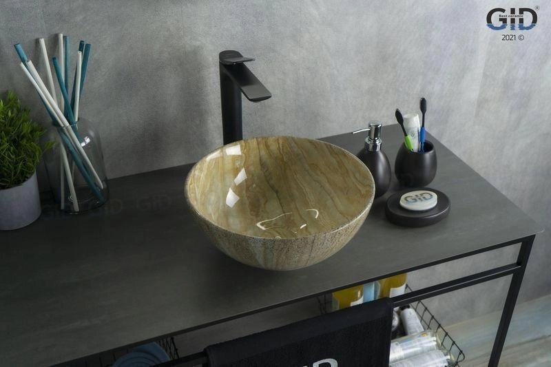 Керамическая раковина накладная Gid Mnc488 под камень без отверстия под смеситель привлекает удобством и простотой монтажа. Продукт выполнен из эколгоичных и безопасных матриалов.