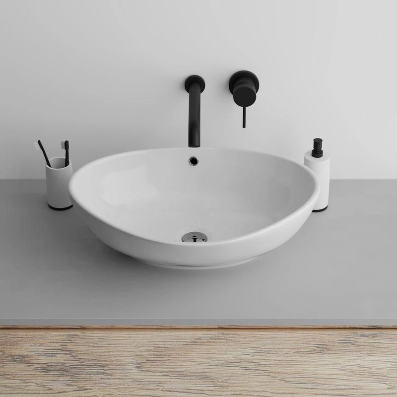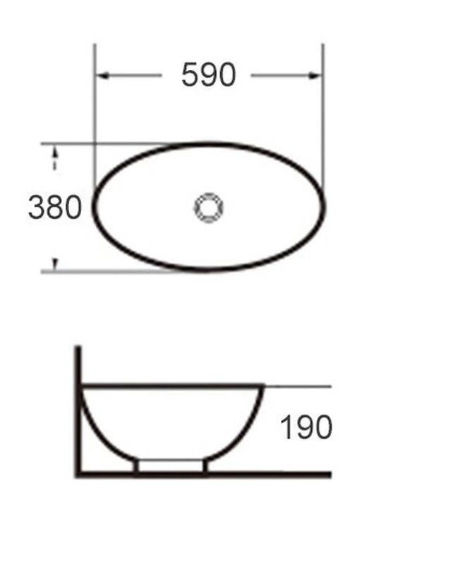 Донный клапан - приобретается отдельно. Раковина накладная. Размер: 590 х 380 х 190мм