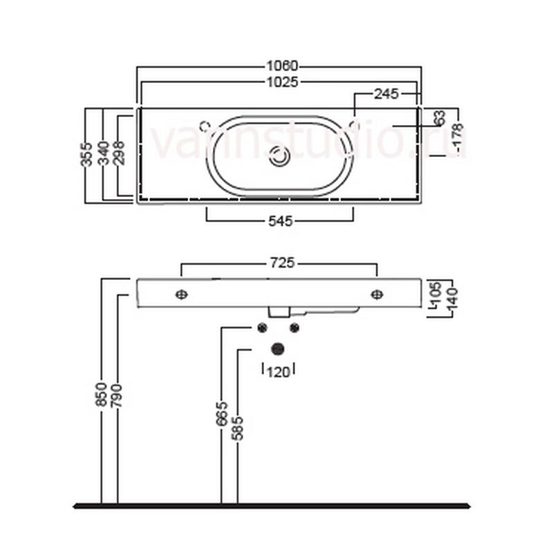 Раковина Hatria Area YOQ901.Раковина с 1 отверстием.Размеры 106x35см.