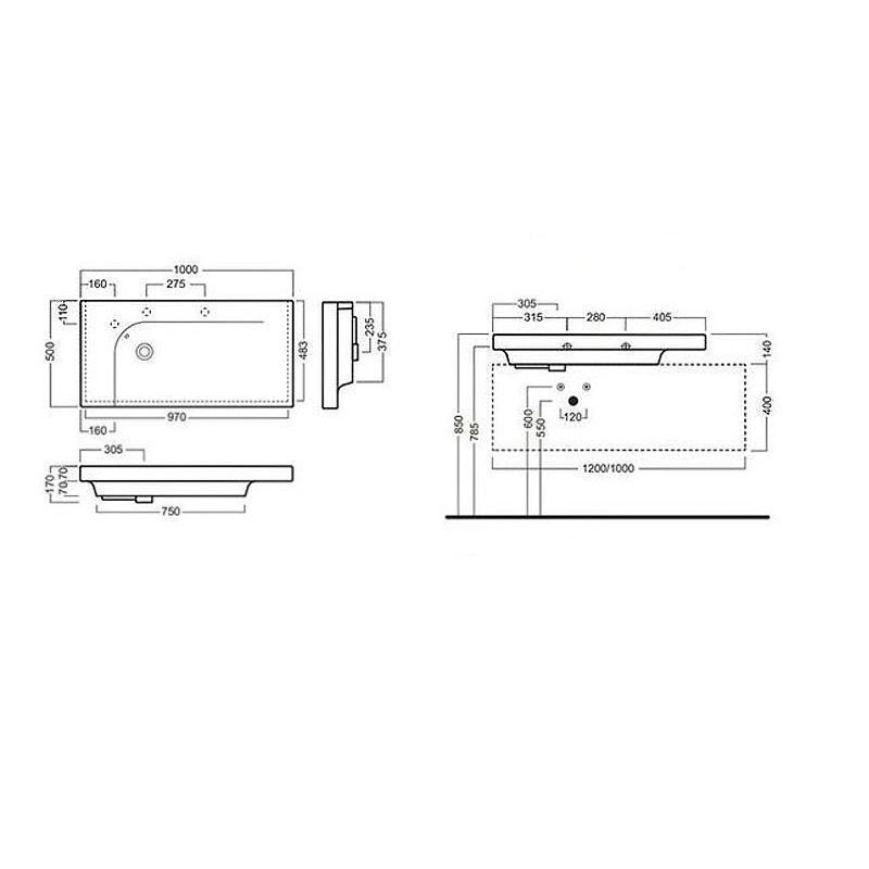 Раковина подвесная Hatria GRANDANGOLO YXF701 с одним отверстием для смесителя (намечено еще 2 отверстия), с переливом, размер 100х50 см, цвет белый.