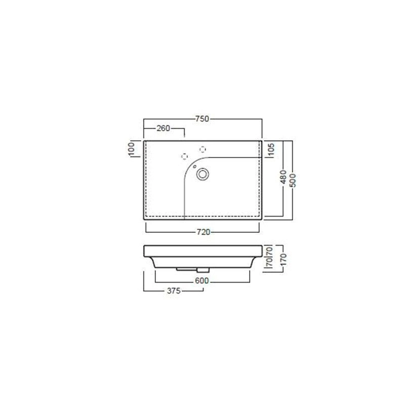 Раковина подвесная Hatria GRANDANGOLO YXF801 с 1 отверстием для смесителя, чаша справа, еще одно намеченное отверстие, размер 75х50 см, цвет белый.