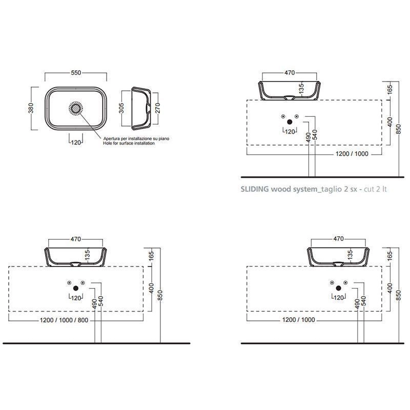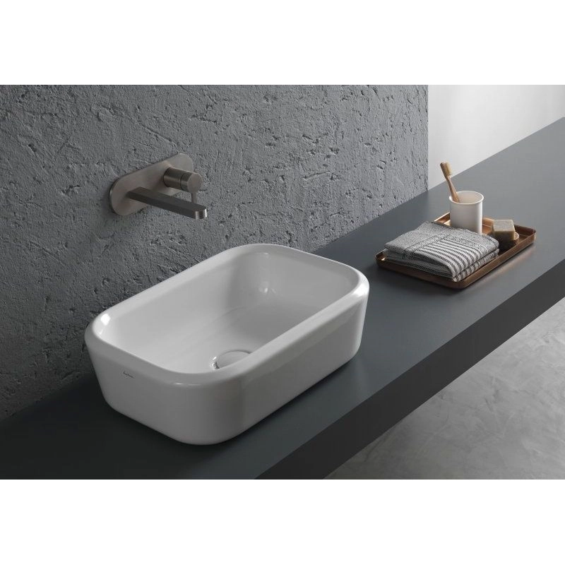 Раковина накладная Hatria Pencil Y1GF01, без отверстий для смесителя, без перелива, размер 55x38 см, цвет белый.