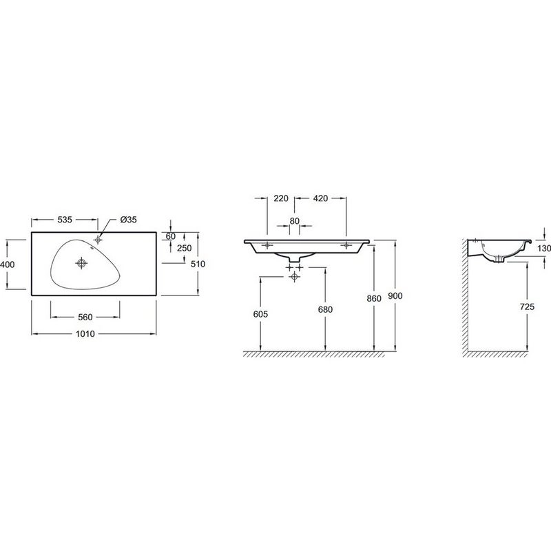 РАЗМЕТКА СВЕРЛЕНИЯ ОТВЕРСТИЯ ДЛЯ СМЕСИТЕЛЯ: 1 сквозное отверстие