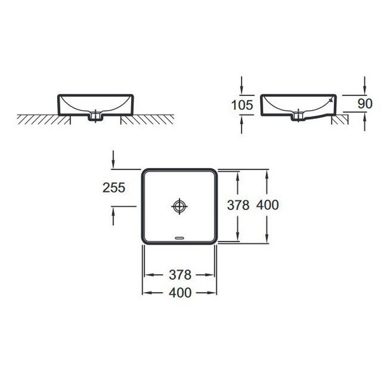 Без отверстия для смесителя . Гладкая нижняя поверхность. Глубина чаши не превышает общей высоты раковины, без отверстия для смесителя