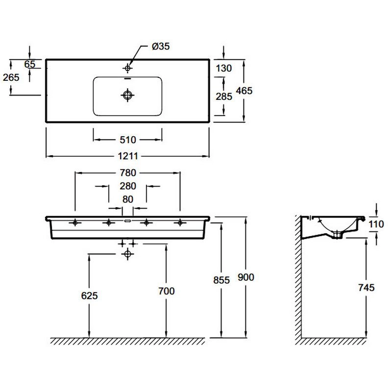 РАЗМЕТКА СВЕРЛЕНИЯ ОТВЕРСТИЯ ДЛЯ СМЕСИТЕЛЯ: