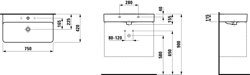 Раковина Laufen VAL 8.1028.5.000.104.1 750х420х115 мм с отверстием под смеситель