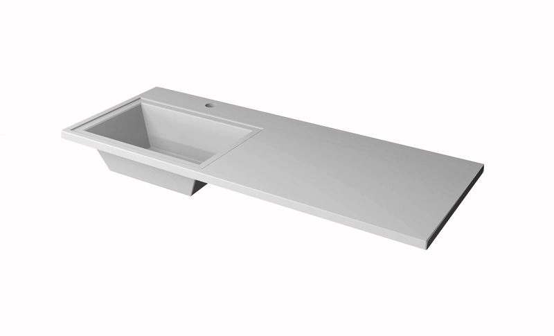 Раковина для ванной комнаты для установки над стиральной машинкой. Верхний слой Гелькоута формирует декоративно защитное покрытие. Раковина крепится на кронштейны. Может эксплуатироваться как самостоятельное изделие, так и со встроенной мебелью.