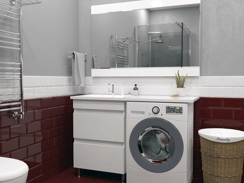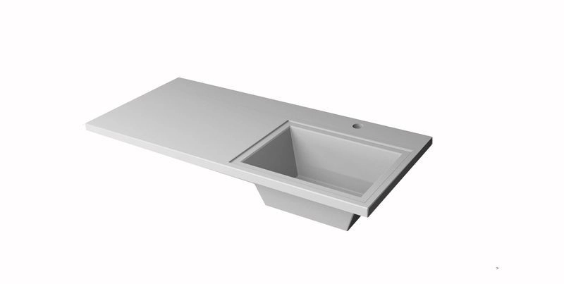 Раковина для ванной комнаты для установки над стиральной машинкой. Верхний слой Гелькоута формирует декоративно защитное покрытие. Раковина крепится на кронштейны. Может эксплуатироваться как самостоятельное изделие, так и со встроенной мебелью.