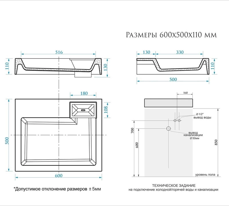 Раковины для установки над стиральной машиной от бренда Uperwood из коллекции Vission представлены в 3 размерах: 60х50 см, 60х55 и 60х60 см. Все раковины изготовлены из литьевого мрамора с покрытием гелькоут, которое выполняет как декоративную, так и защитную функцию.
