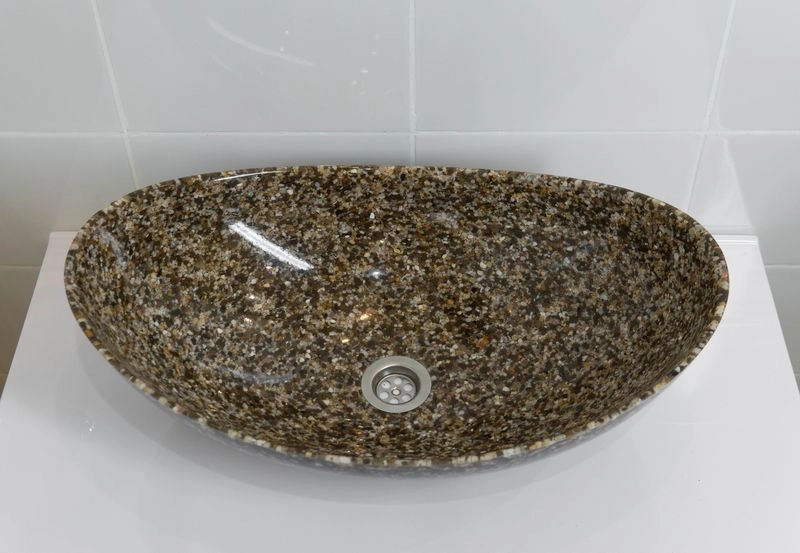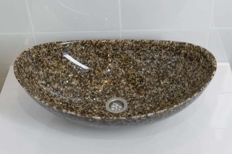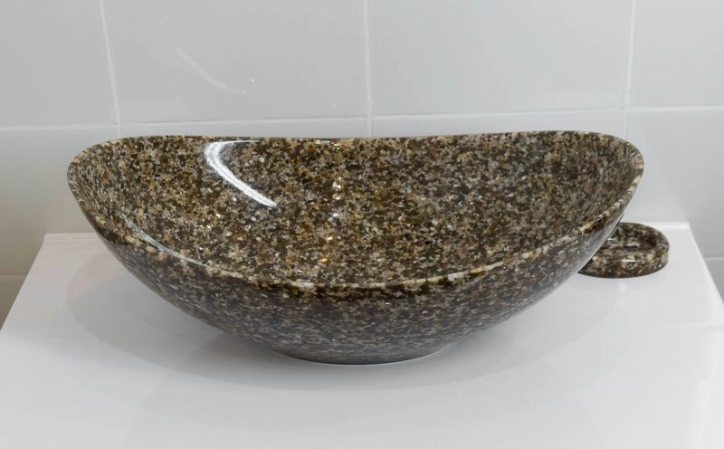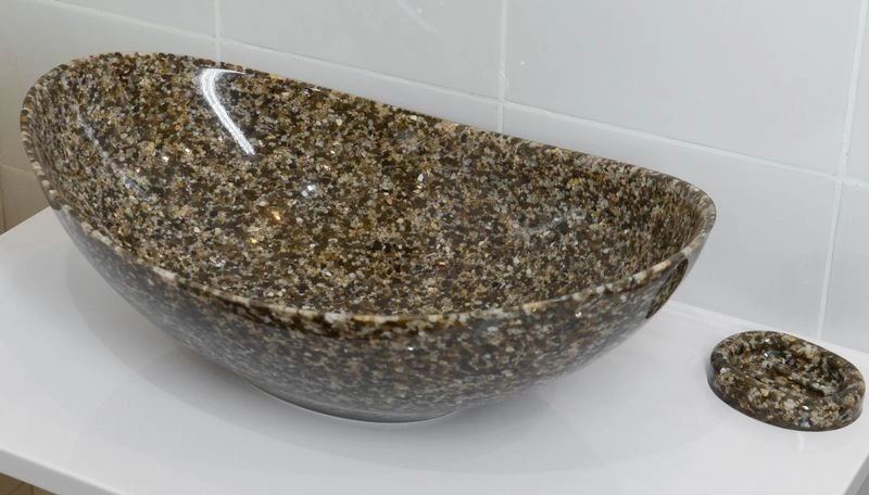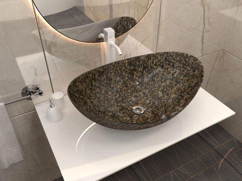 Раковина накладная для ванной комнаты Ореол может размещаться на мебели или на столешнице. Верхний глянцевый слой гелькоута образует красивое декоративное и защитное покрытие. Цвет этой раковины выглядит очень роскошно - коричневый камень с "золотыми" вкраплениями. Раковина изготавливается полностью вручную, процесс производства очень трудоемок, но полученный эффект того стоит!. Тонкие борта, роскошь и изящество этой раковины просто великолепны!