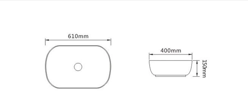 Раковина керамическая, накладная, без перелива, белая глянцевая