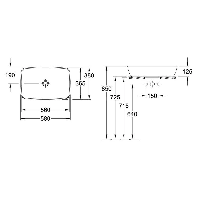 Villeroy & Boch Artis 41725801 Pаковина для установки на столешницу 580 x 380 mm