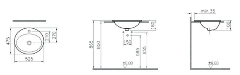 Vitra S20 раковина врезная сверху овальная 55 см