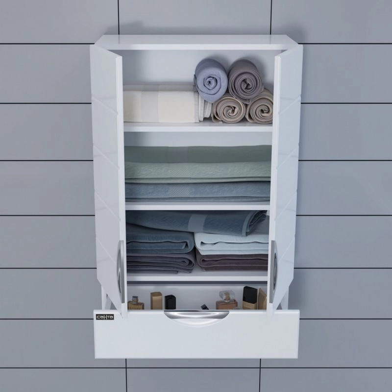 Шкаф подвесной СаНта Родос 60 х 90 см, 406003, над стиральной машиной Комплектация: ручка хром - 3 шт. , ящик с доводчиками полного выдвижения - 1 шт., на дверках петли плавного закрывания.