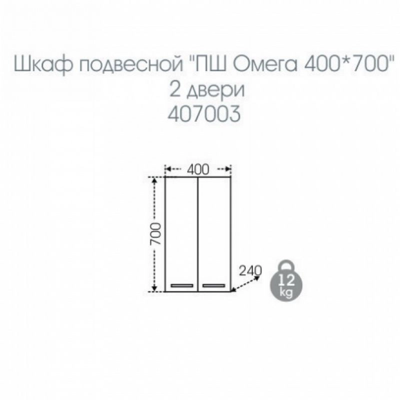 Шкаф СаНта Омега 40х70 407003, подвесной, над стиральной машиной Комплектация: ручка хром - 2 шт. , на дверках петли плавного закрывания - 2 шт.