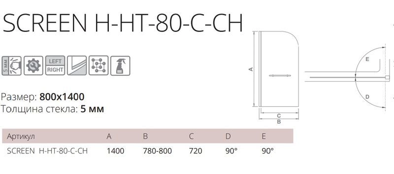(1 ств.распашные+ручка, стекло 5 мм)