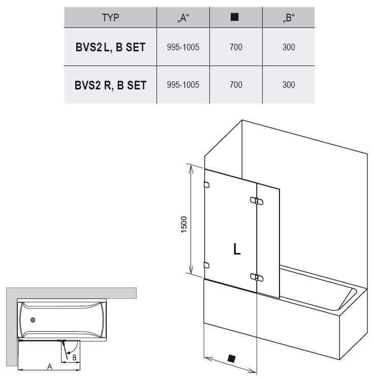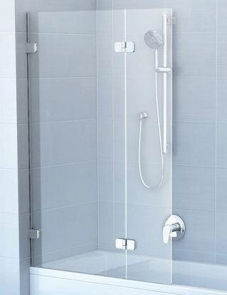 Ширина: 100 см. Высота: 150 см. Профиль: Хром. Шторка состоит из одной неподвижной и одной подвижной части, которая поворачивается наружу. Толщина стекла составляет 6 мм. Комплект крепления B SET необходимо докупать отдельно.