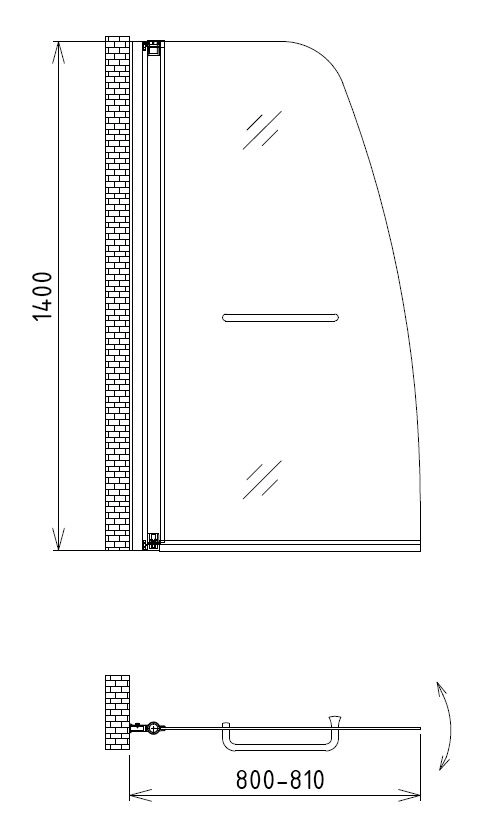 универсальный монтаж. Высота 140 см распашная шторка на ванну, распахивается на 180 градусов.