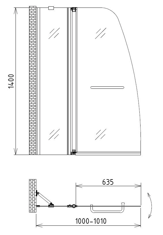 универсальный монтаж. Высота 140 см распашная шторка на ванну, распахивается на 180 градусов.
