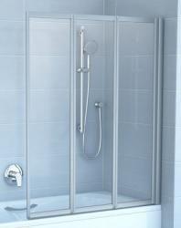 Ширина: 115 см. Высота: 140 см. Профиль: Сатин. Стекло: Прозрачное. Трехэлементная складывающаяся. Шторка состоит из трех подвижных частей, которые складываются вовнутрь ванны.