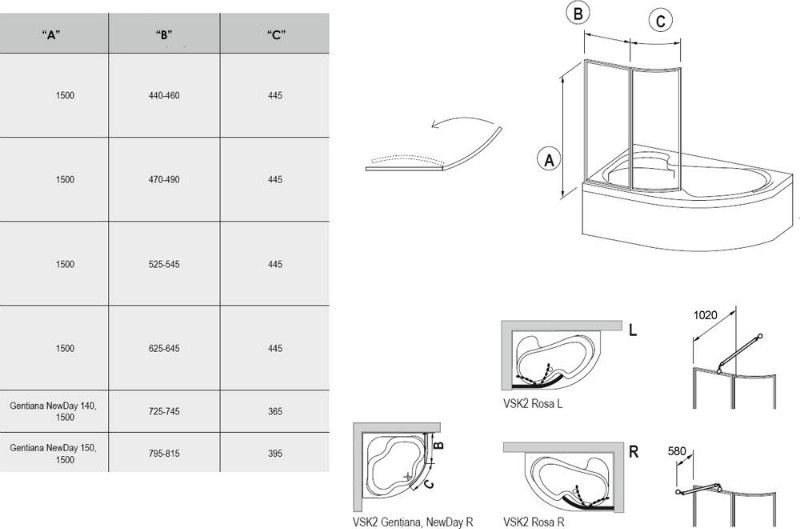 Ширина: 140 см. Высота: 150 см. Профиль: Белый. Стекло: Прозрачное. Двухэлементная, толстостенные алюминиевых профилей. Шторка состоит из неподвижной и подвижной части, которая складывается вовнутрь ванны. Устанавливается на ванны Rosa