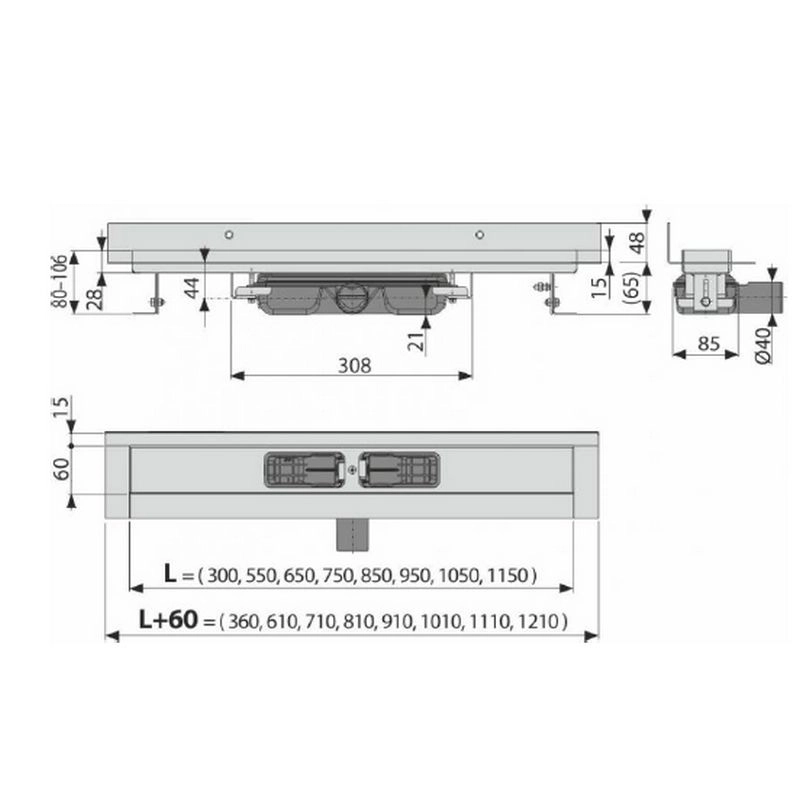 Высота монтажа от 65 мм.