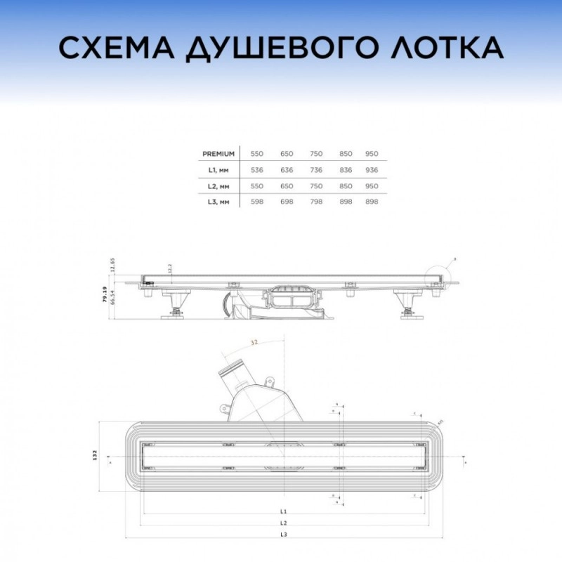 • Допустимая нагрузка на сухой душевой трап 300 кг;