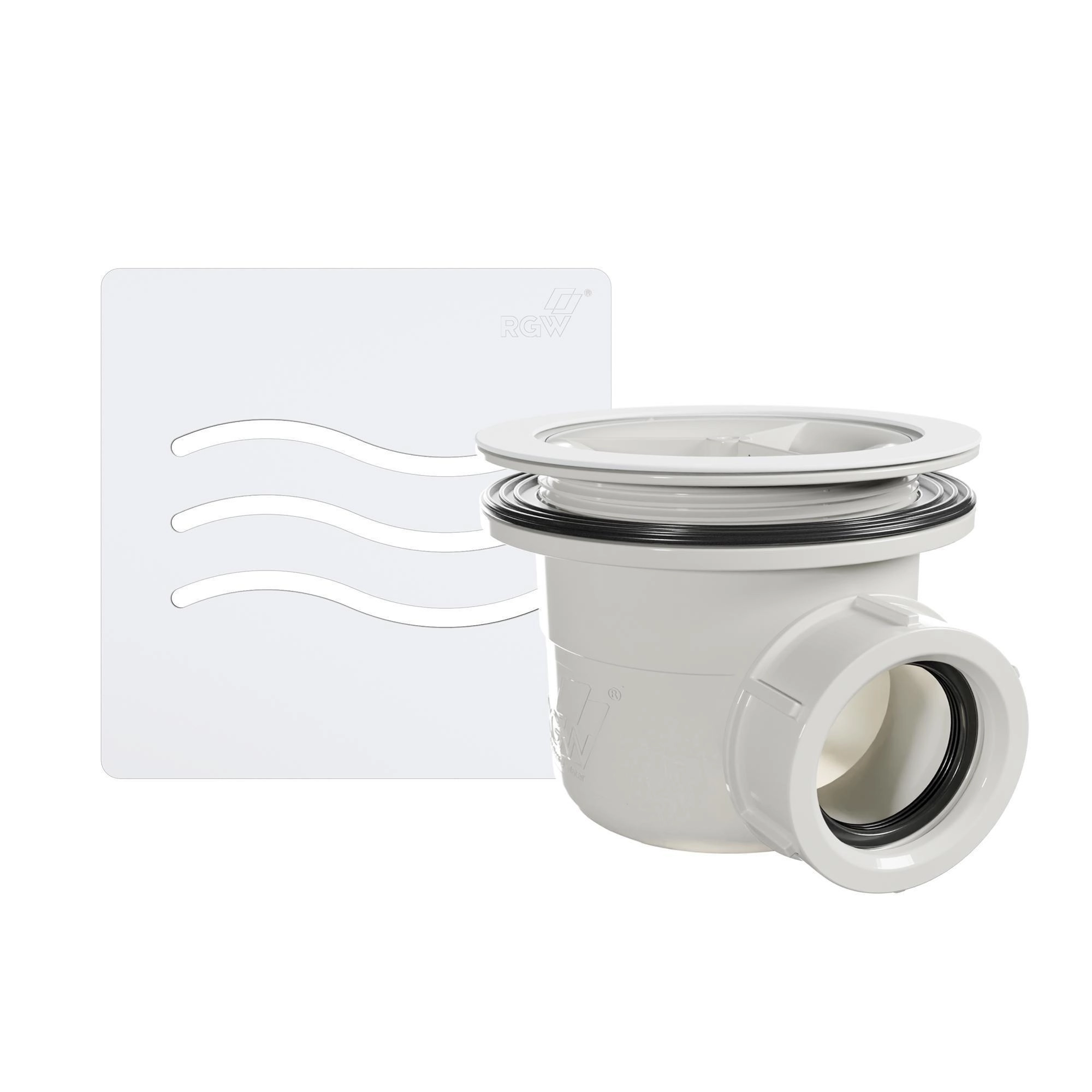 Сифон RGW S-010 для душевых поддонов с решеткой из нержавеющей стали.