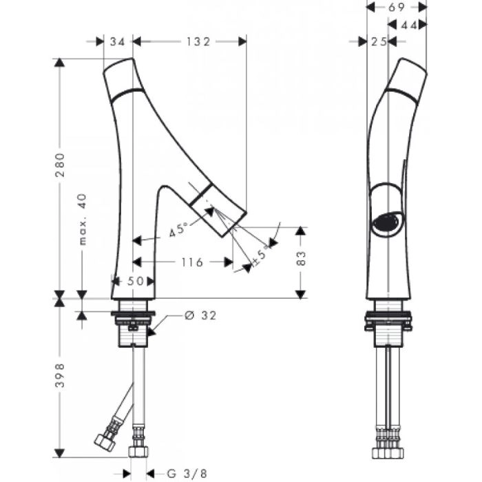 ComfortZone 80 выступ 116 мм душевая струя расход воды: 3,5 л/мин расход воды в режиме Booster: 5 л/мин регулируемый формирователь струи керамический картридж для регулировки температуры керамический вентиль для регулировки объема воды раздельная регулировка температуры / объема воды регулируемое ограничение температуры с изолированной подачей воды незапираемый клапан фильтра