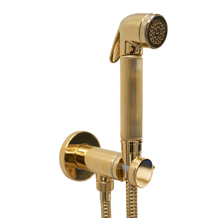 Смеситель Bossini Nikita E37008B.021 для биде золото Комплект гигиенический:прогрессивный смеситель, лейка с клапаном подачи воды, шланг 1250 мм Материал лейки: латунь Гигиенический душ Bossini Nikita с прогрессивным смесителем в классическом дизайне в цвете золото - несомненно станет отличным украшением вашей туалетной комнаты.
